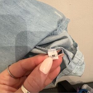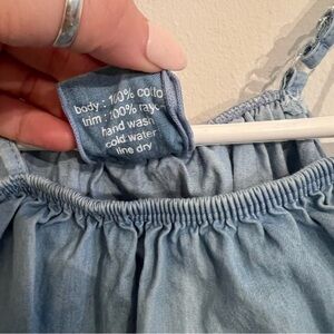 Flower by Zoe Chambray Drop Shoulder Dress. Body is 100% cotton. Trim is 100% rayon. Size medium (8/10). Lester’s / Denny’s