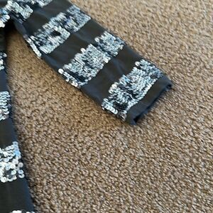 Pippa & Julie Girls Black with Silver Stars Mesh Skirt. Made of rayon & spandex. size 5. 11” pit to pit. 22.5” shoulder to bottom hem. Gently worn.