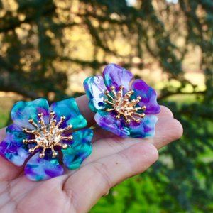 Trendy Colorful Resin Exaggerated Big Flower Shaped Earrings Statement Earrings Garden Monet Dainty Bridal Jewelry Spring Bridesmaid earrings Dazzle Boho Sxxx