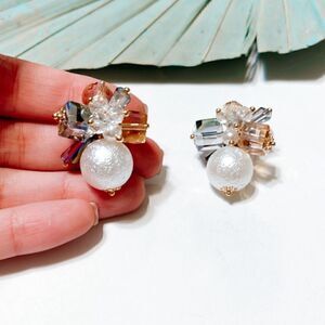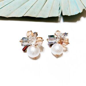 Crystal flower pearl stud earrings in gold tone
