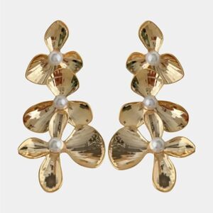 Multi flower pearl decor drop dangle earrings in gold tone