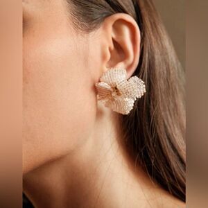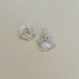 3D beaded flower stud earrings in gold tone hardware
