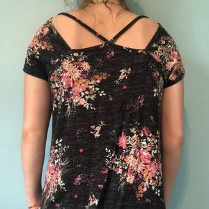 Flowery Black Top With Lace Hem