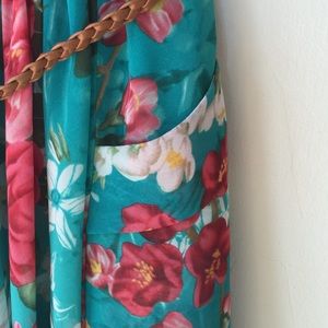 This dress is lined and equipped with pockets. Belt is included and would fit a medium sized person. Pet free and smoke free home. Only worn once.