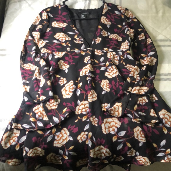 Bells sleeves, Flowey from the bottom V-shaped from the chest area and sheer materia but not see through
