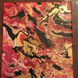 Fluid art mixed media painting using acrylic paint and ultra fine glitter. Size is eight inches by six inches. Paint on the side painting so no need to frame. Already wired for hanging, so ready to hang. Very pretty and calming. Original work by me.