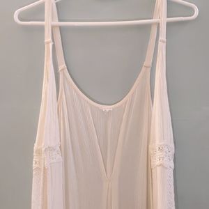 Off white very light fabric, missing original tags but purchased from target. Perfect spring/summer accessory. Straps non adjustable. 50 inches in length.