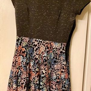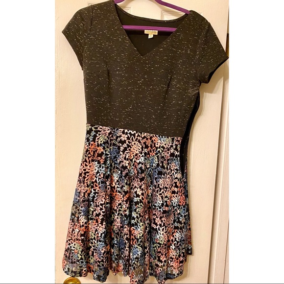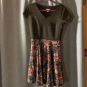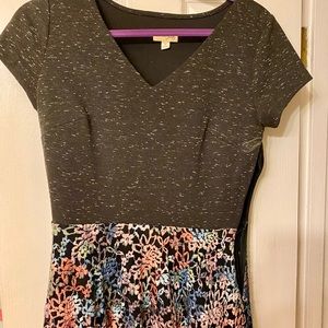 Really cute flowy doll dress. Floral print on bottom and solid grey on top. Dress is verbally flattering and only worn once. Size Medium, true to size. Worn with love.