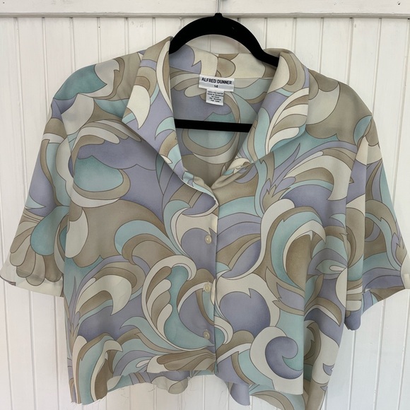 This vintage button down features a beautiful blue/purple patterned. I did crop it so it has a raw hem at the bottom