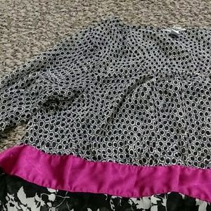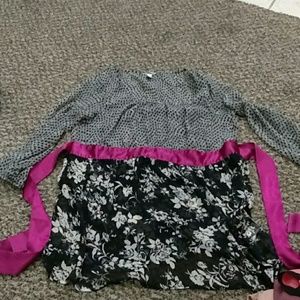 A nice blouse for every occasion. Ties in the back. The only flaw is shown in the pictures on the end of the ribbon, other than that it is in perfect condition. The fleeces have elastic on the ends. Very stretchy, does not constrain.