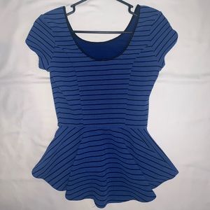 The fit is tight at the top and lose at the bottom. This blouse makes the waist look very small.