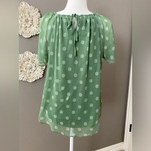 Cute polka dot flowy blouse with tie back neck and lining. Great Condition.