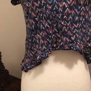 Flowy Crop Top Bottom of shirt is higher in center and flows longer on the side for a super casually beach vibe Little ruffles on bottom Smoke free