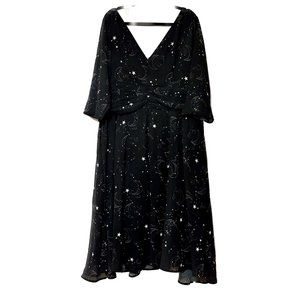 Flowy Dress ~ Crescent Moons & Stars in the Clouds print ~ 4x ~ black & white