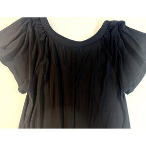Measurements are approximate and pictured: pit to pit 18+ (gathers and stretch will increase width) length 29 in.