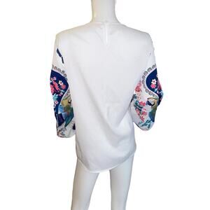 Flowy Flowers, Pretty Parrots Top, Like Satin, Long Puff Sleeves, Ladies Large