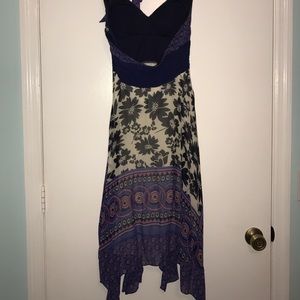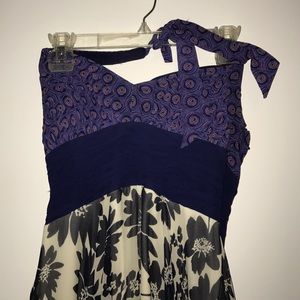 Beautiful flow with a halter top. Dress worn once and in great shape. Build in cups for chest.