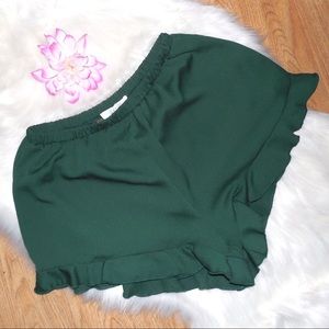 Flowy Emerald High-Waist Shorts - Excellent Condition - Size Small - 100% Polyester - Stretchy Waist - Ruffle Bottoms - Dark Green in Color