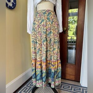 Flowy High-Waisted Floral Boho Maxi Skirt, Size S