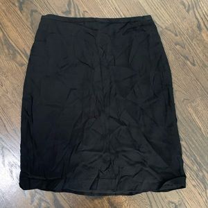 NWT Flowy medium weight pencil skirt in 100% viscose. The Madewell Uptown Slip Skirt. Fully lined. Waist has ruched elastic back. Fabric has a very nice hand feel. Says dry clean only and probably needs dry cleaning or careful pressing to remove wrinkles. Sorry I didn’t store it very well in my drawer, but other than wrinkles it’s a great skirt in perfect condition! Waist measures 14.5” flat (but stretches). Length is 24”