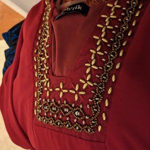 Gold beaded Flare sleeves Flowy mini dress Length: mid thigh Size M tag, but fits like size 2-4