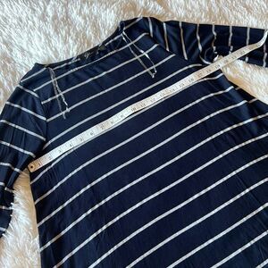 Flowy Navy & White Striped 3/4 Sleeve Hi Low Top M