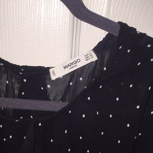 Great used condition. Back has cut open design. Very cute with white pants! Fits like a Medium - not a true XS! Black sheer with white polka dots