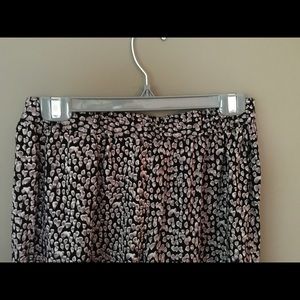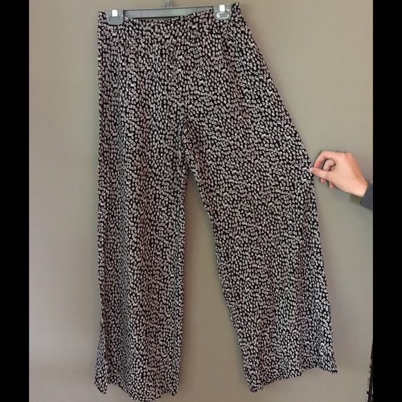 Very cute purple and black flowy pants. Waistband elastic in the back. Perfect to pair with a crop. Excellent Condition.