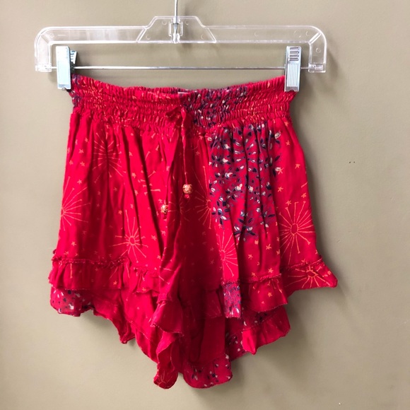 These red shorts have a flexible waistband and are super flowy and comfortable.