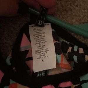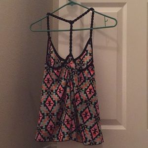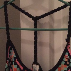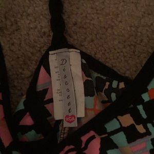 Small, Pink Green Black Orange Red, Knotted Straps, T Back, Could be a Crop Top Depending on how tall you are, worn once or twice, Flowy