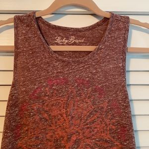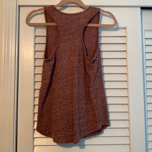 Heathered pink/red racer back tank top. Sun emblem on front. Says XS but fits S