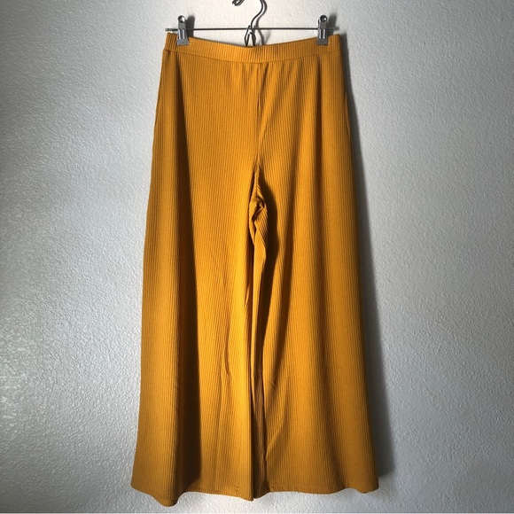Flowy culottes in a nice ribbed fabric with good stretch. Lovely mustard yellow color. Elastic waistband. Fits like a S/M.