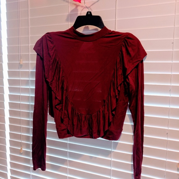 Flowy Ruffle Front Blouse with Open Back