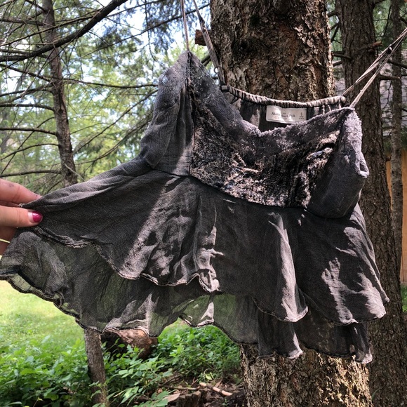 Flowy Ruffle tank top from Abercrombie and Fitch. Charcoal grey. Boho vibe. Cropped top. Size
