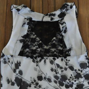 Satin underneath layer, sheer overlay... V neck front and black lace at the top back. Look good this Spring/Summer in this sweet top!!!!