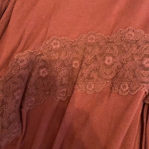 Oversized flowy rust colored tank top! Super comfy with a lace detail. Has a free people/boho look!