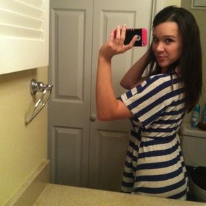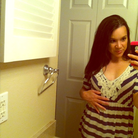 Innocent and breathable navy blue and light grey loose top. Goes great with short shorts or capris for a relaxed yet girly look. Fits like small.