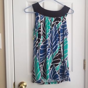 Loose fitting, flowy top. Never worn. Purchased and washed and has sat in my closet since. This would be cute for business casual attire. The material is wrinkle-free. Please feel free to ask any questions. 😊
