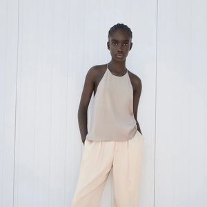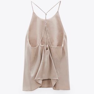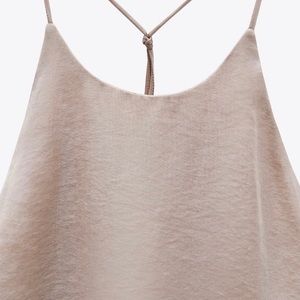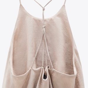 Flowy round neck top with crossing straps on the back with knot details