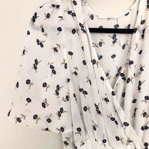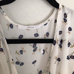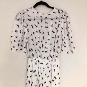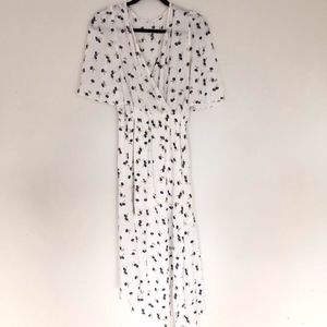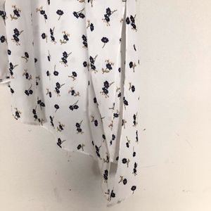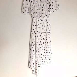 Flowy White Maxi Dress Floral Print Asymmetrical
