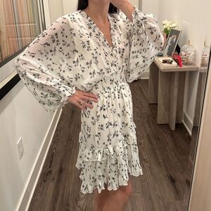 Flowy and floral white long sleeve dress from Pookie and Sebastian