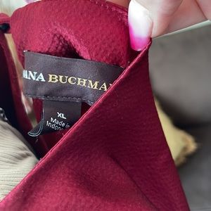 Burgandy flowy summer blouse, goes well with a suit, or just shorts.