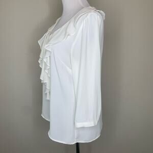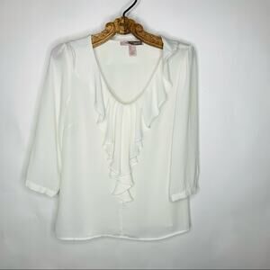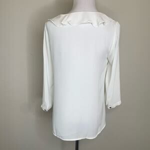Flowy chiffon Cream Ruffle Neck Blouse Sz Small