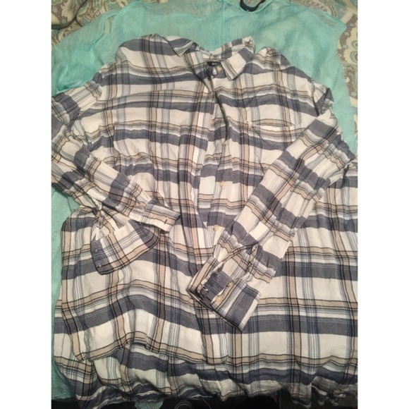 Never worn. Just tried on. It's very flowing, very flattering light weight enough to wear in the spring in the fall really cute with an undershirt