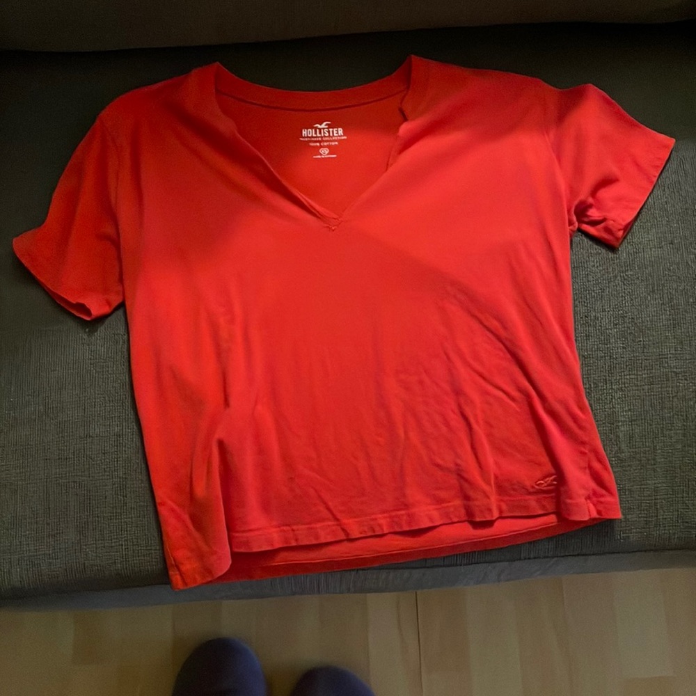 V neck top. Cropped, bright red color. It’s meant to fit a bit loose. Worn 3/4 times & still in great condition.