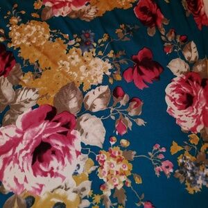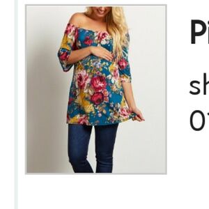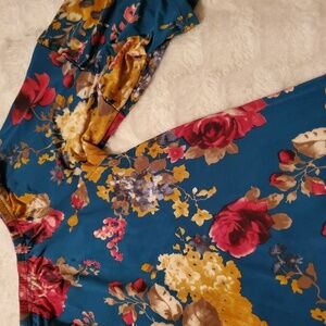 Sz large. Beautiful maternity shirt used once. COLOR IS MORE TEAL THAN BLUE not sure why camera couldnt pick it up🙄🤣 hints of pink, gold, teal, brown and blue