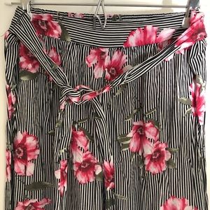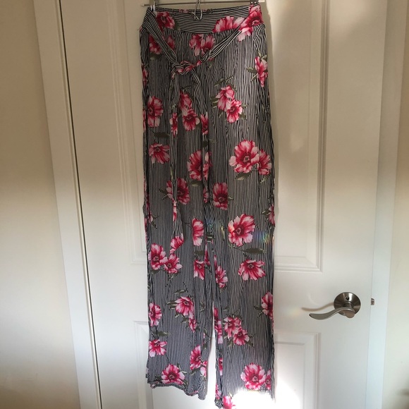 Flowy, wide leg pants. Attached belt with elastic waist in back. Lightweight material....perfect for beach!