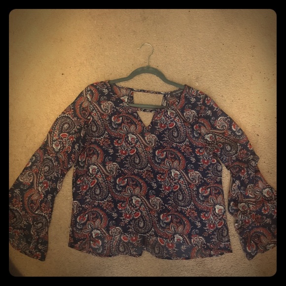 Chiffon flowy blouse. Paisley(blue, red, white). Worn once, and in great condition. Super cute!