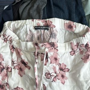 Flowy spring time fun pants from Brandy Melville. White with mauve flowers