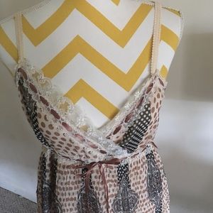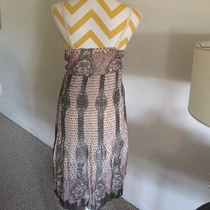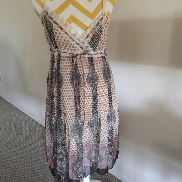 Adjustable str aps, lacie surplus top w/ tie for better fit. Umpire waist Sz. 8 Length from under breast down is 25" lined multi color and pattern. This dress is so adorable.